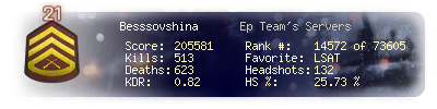 | Headshots | 132 | Suicides | 7 | Headshot / Kill | 25.73 % |
