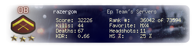 | Kill-streak | 6 | Death-streak | 8 | Team Kills | 0 |