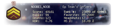 | Kill-streak | 9 | Death-streak | 8 | Team Kills | 0 |