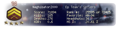 | Kills | 165 | Deaths | 276 | Kill / Death | 0.6 |