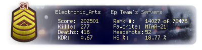 | Kill-streak | 6 | Death-streak | 14 | Team Kills | 0 |