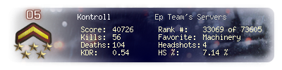| Kills | 56 | Deaths | 104 | Kill / Death | 0.54 |