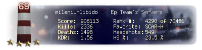 | Kills | 2336 | Deaths | 1498 | Kill / Death | 1.56 |