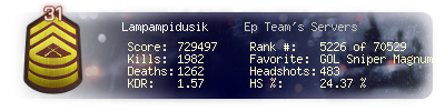 | Headshots | 441 | Suicides | 8 | Headshot / Kill | 25 % |