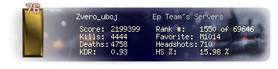 | Headshots | 710 | Suicides | 38 | Headshot / Kill | 15.98 % |
