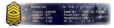 | Kill-streak | 10 | Death-streak | 16 | Team Kills | 0 |