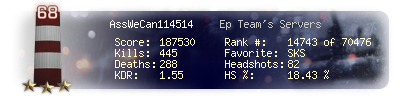 | Kills | 445 | Deaths | 288 | Kill / Death | 1.55 |