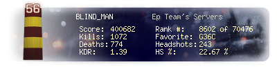 | Headshots | 243 | Suicides | 15 | Headshot / Kill | 22.67 % |