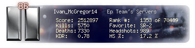 | Kill-streak | 15 | Death-streak | 21 | Team Kills | 3 |