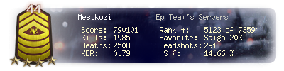 | Headshots | 291 | Suicides | 40 | Headshot / Kill | 14.66 % |