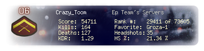 | Kill-streak | 7 | Death-streak | 9 | Team Kills | 0 |