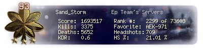 | Headshots | 188 | Suicides | 5 | Headshot / Kill | 20.37 % |