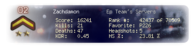 | Kill-streak | 4 | Death-streak | 15 | Team Kills | 0 |
