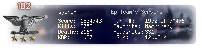 | Kills | 2752 | Deaths | 2160 | Kill / Death | 1.27 |