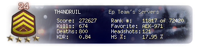 | Kill-streak | 5 | Death-streak | 7 | Team Kills | 0 |