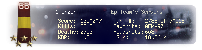 | Kills | 3312 | Deaths | 2753 | Kill / Death | 1.2 |