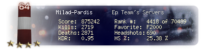 | Headshots | 227 | Suicides | 24 | Headshot / Kill | 23.45 % |