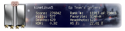 | Kill-streak | 8 | Death-streak | 9 | Team Kills | 0 |