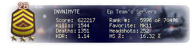 | Kill-streak | 14 | Death-streak | 12 | Team Kills | 0 |