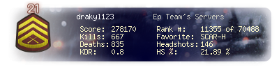 | Headshots | 118 | Suicides | 6 | Headshot / Kill | 23.09 % |