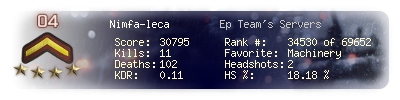 | Kills | 11 | Deaths | 102 | Kill / Death | 0.11 |