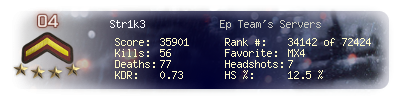| Kill-streak | 4 | Death-streak | 12 | Team Kills | 0 |