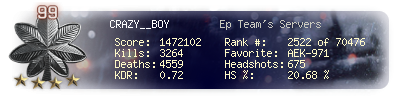 | Kills | 3264 | Deaths | 4559 | Kill / Death | 0.72 |