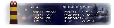 | Headshots | 792 | Suicides | 2 | Headshot / Kill | 24.25 % |