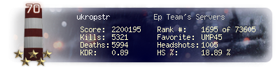 | Kill-streak | 11 | Death-streak | 17 | Team Kills | 3 |