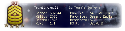 | Headshots | 677 | Suicides | 22 | Headshot / Kill | 32.78 % |