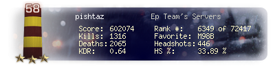 | Headshots | 229 | Suicides | 14 | Headshot / Kill | 32.39 % |