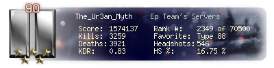 | Headshots | 45 | Suicides | 7 | Headshot / Kill | 13.39 % |