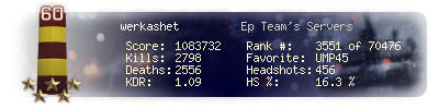| Headshots | 456 | Suicides | 44 | Headshot / Kill | 16.3 % |