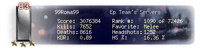 | Kills | 1224 | Deaths | 1471 | Kill / Death | 0.83 |