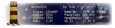 | Kills | 3210 | Deaths | 3303 | Kill / Death | 0.97 |