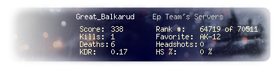 | Headshots | 0 | Suicides | 0 | Headshot / Kill | 0 % |