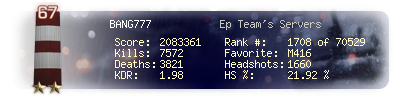 | Headshots | 1660 | Suicides | 24 | Headshot / Kill | 21.92 % |