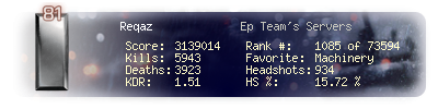| Headshots | 825 | Suicides | 28 | Headshot / Kill | 15.82 % |