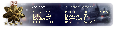 | Headshots | 23 | Suicides | 1 | Headshot / Kill | 24.21 % |