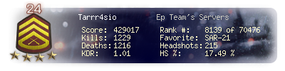 | Headshots | 80 | Suicides | 17 | Headshot / Kill | 21.56 % |