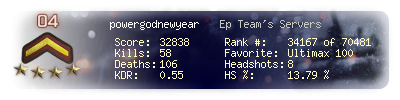 | Kill-streak | 4 | Death-streak | 13 | Team Kills | 0 |