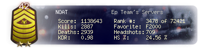 | Headshots | 709 | Suicides | 9 | Headshot / Kill | 24.56 % |