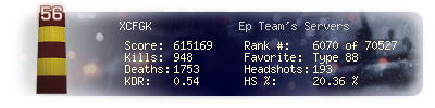 | Headshots | 193 | Suicides | 11 | Headshot / Kill | 20.36 % |