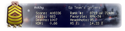 | Kills | 663 | Deaths | 1007 | Kill / Death | 0.66 |