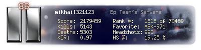| Kill-streak | 19 | Death-streak | 15 | Team Kills | 2 |