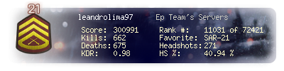 | Headshots | 253 | Suicides | 13 | Headshot / Kill | 41.68 % |