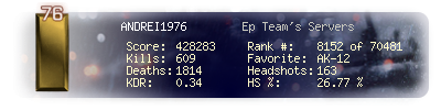 | Headshots | 113 | Suicides | 11 | Headshot / Kill | 29.43 % |