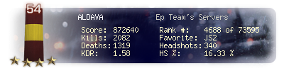 | Headshots | 265 | Suicides | 23 | Headshot / Kill | 15.49 % |