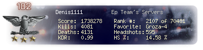 | Headshots | 479 | Suicides | 31 | Headshot / Kill | 13.9 % |