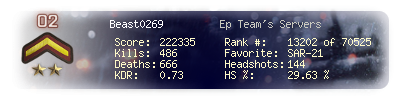 | Kills | 486 | Deaths | 666 | Kill / Death | 0.73 |
